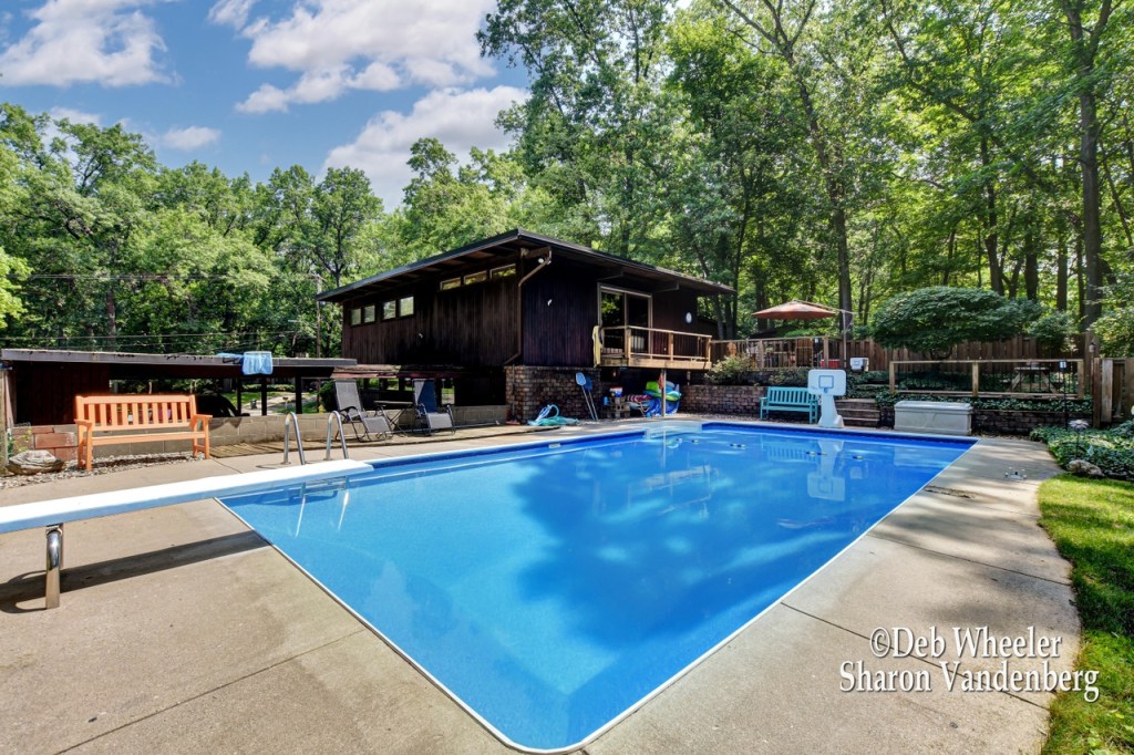 Meadowlawn #3 sits to the righthand side of the court and is very noticeable from the adjacent intersection. This home is constructed of wood and stone in a Danish modern, “box” style. One very distinguishing feature of this home is it has an outdoor pool and patio; simply an inviting home for get-togethers and parties.